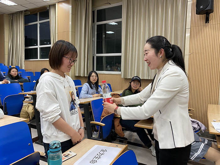 高婷老师对到场的志愿者开展志愿者服务守则及行为规范培训,从志愿服务的基本要求、志愿者的仪容着装、志愿者的行为和举止等方面进行了互动式培训。