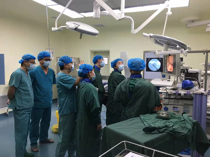 入院第一周,为天水四院开展第一例免射线内镜下营养管置入;第二周,整合内镜室奥林巴斯主机、普外科奥林巴斯电工作站、骨科X线机,放射科防护设备,在手术室开展了天水四院第一台ERCP;第三周指导消化科自主开展第一台食管静脉曲张套扎术。均取得成功。